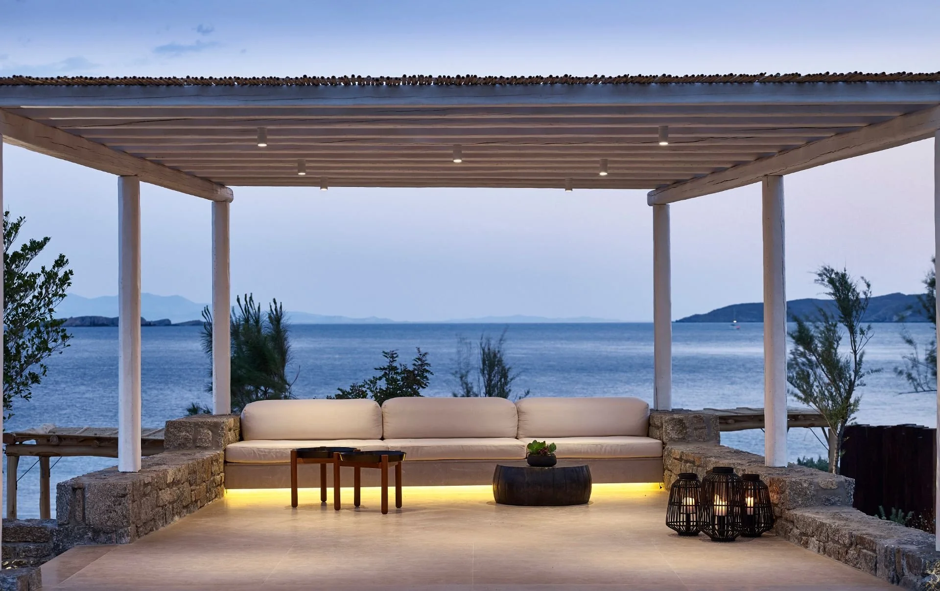 DEOS draws its name from the ancient Greek term signifying a sense of awe or wonder, inspired by the sublime. Perched above Mykonos town, the stunning panorama spans from the 16th-century windmills of the old harbour to the neighbouring islands of Syros, Tinos, and the sacred Delos.