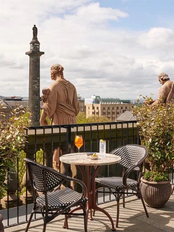 Once a 19th-century church, The Glasshouse reimagines history through a contemporary lens. Its striking glass façade conceals rooms with floor-to-ceiling views of Calton Hill, and the rooftop garden feels like a hidden sanctuary above the city’s bustle. A place where heritage meets modernism, effortlessly.